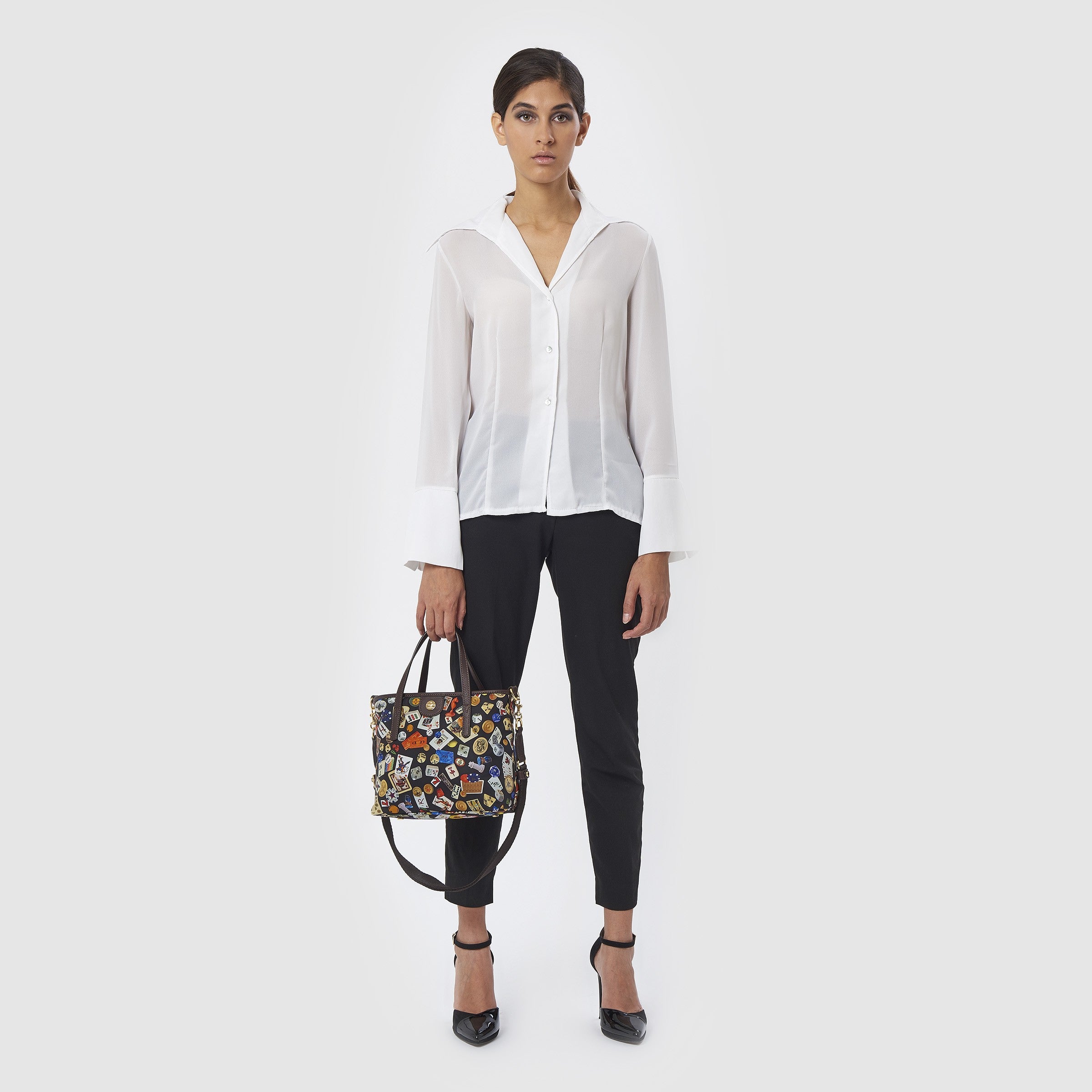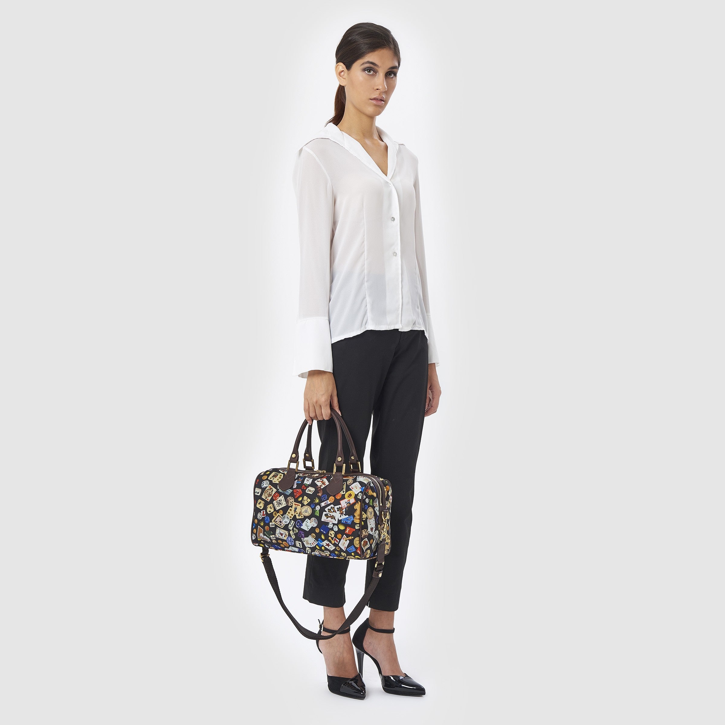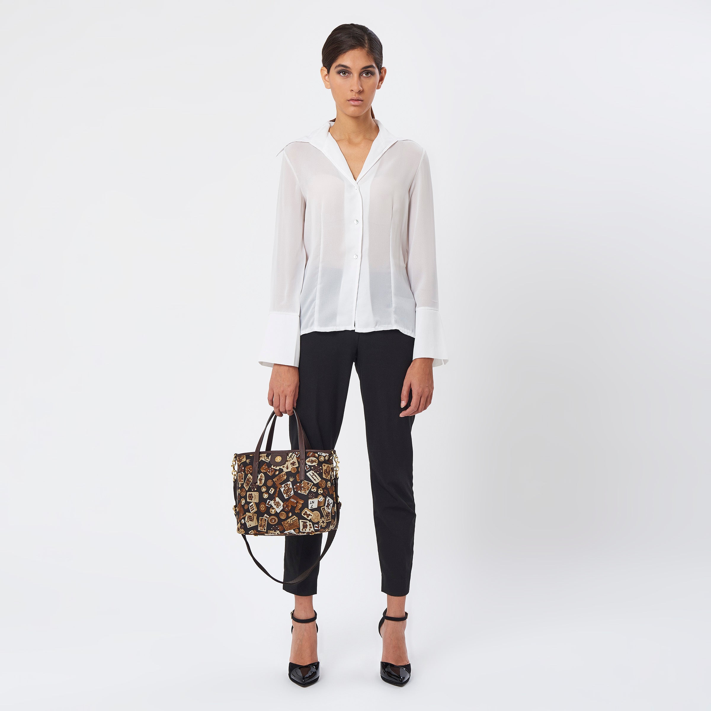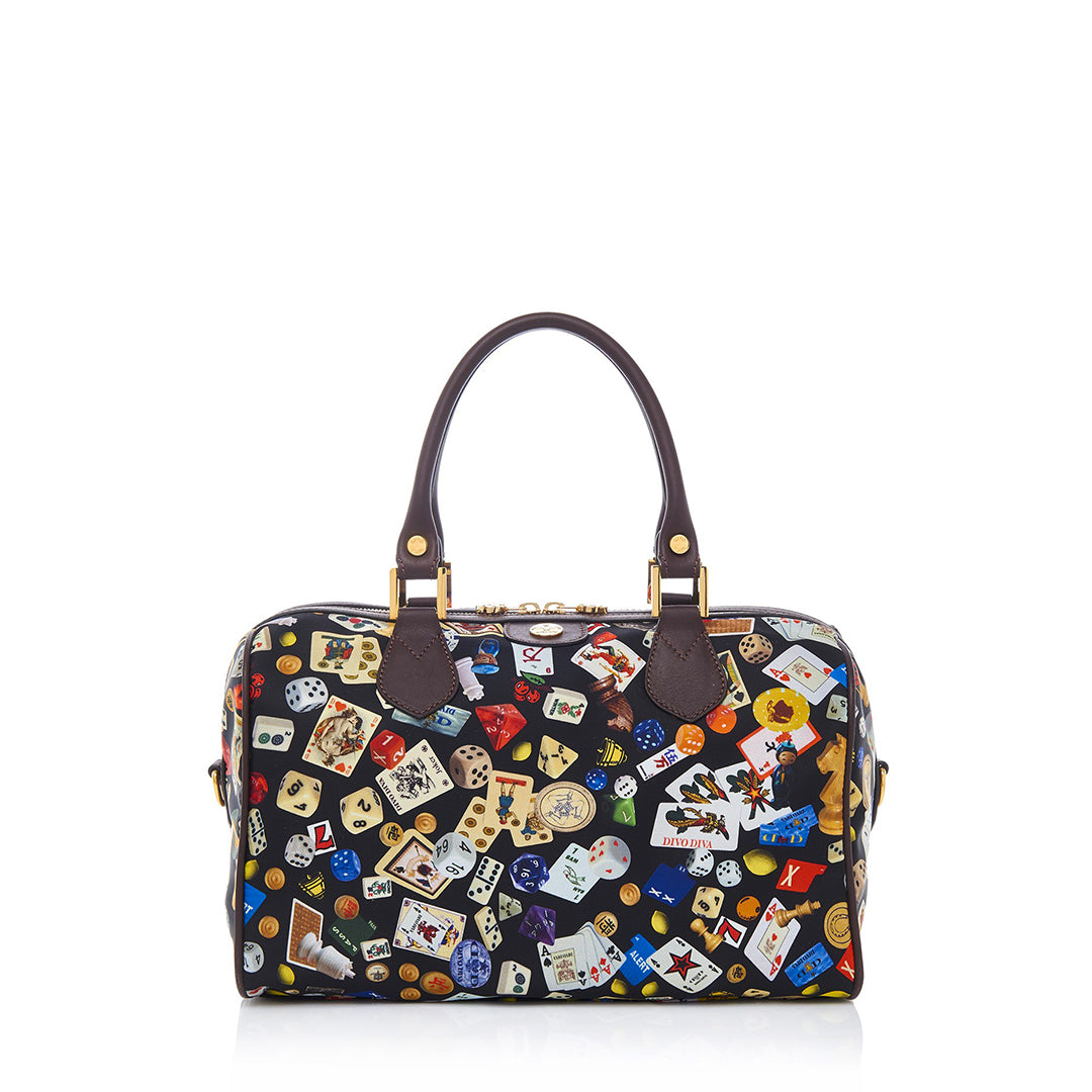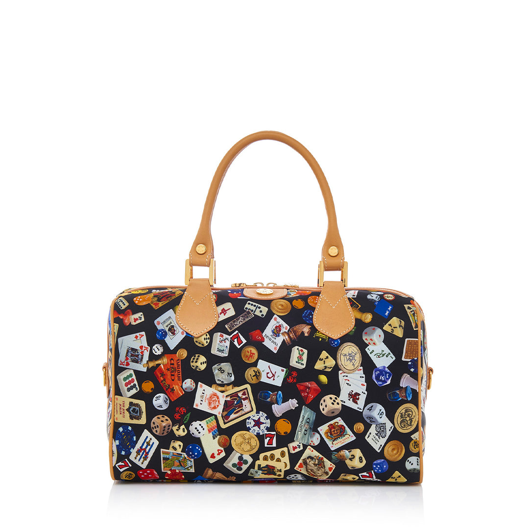 Sanremo Borsa shopping media in Nylon con Disegno Gambling Multicolor Nero/Cacao