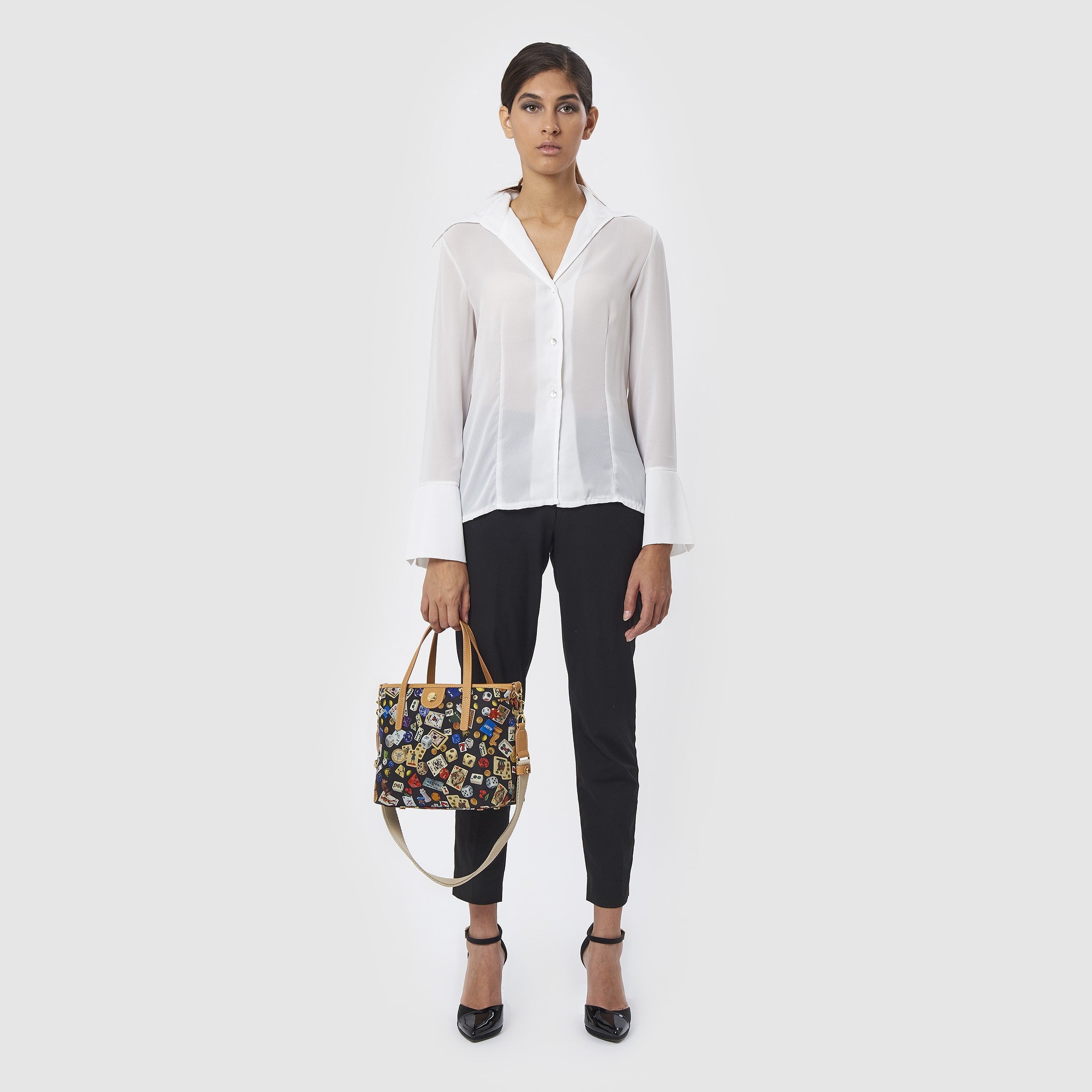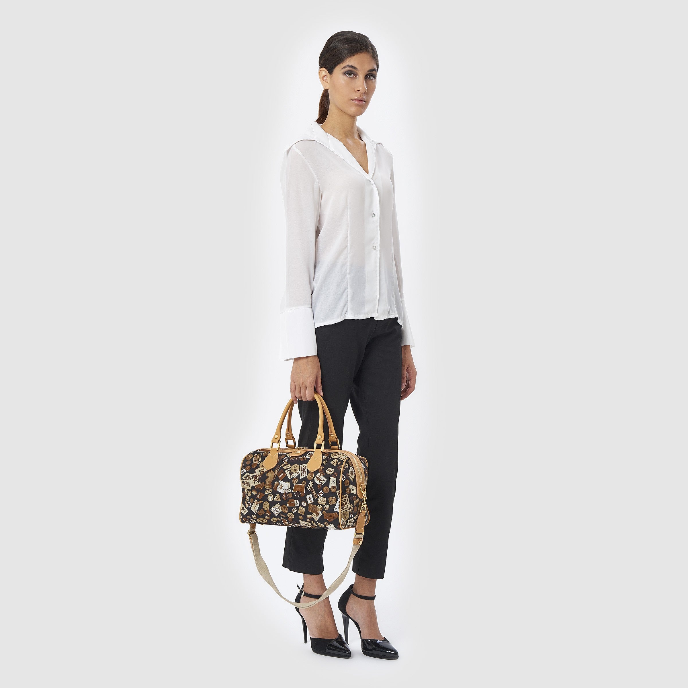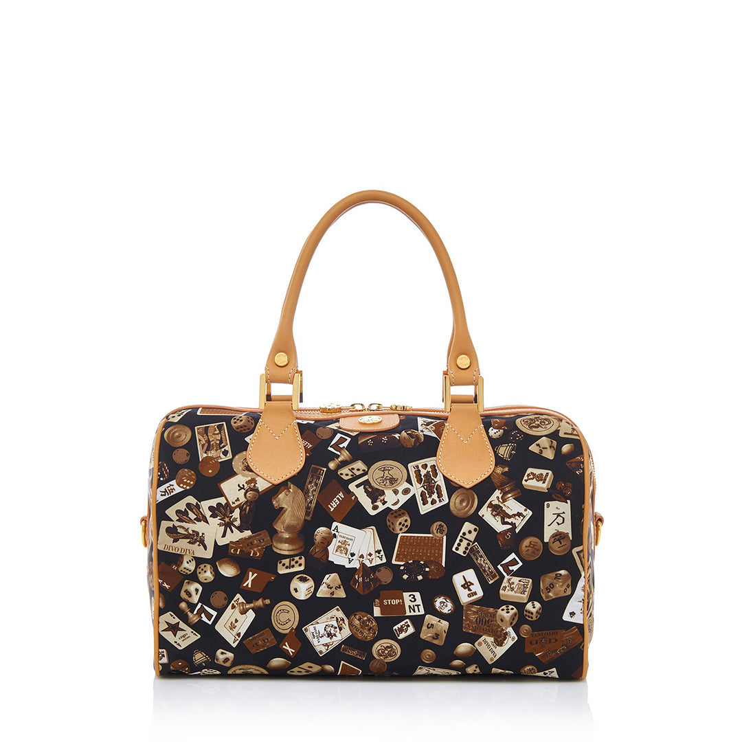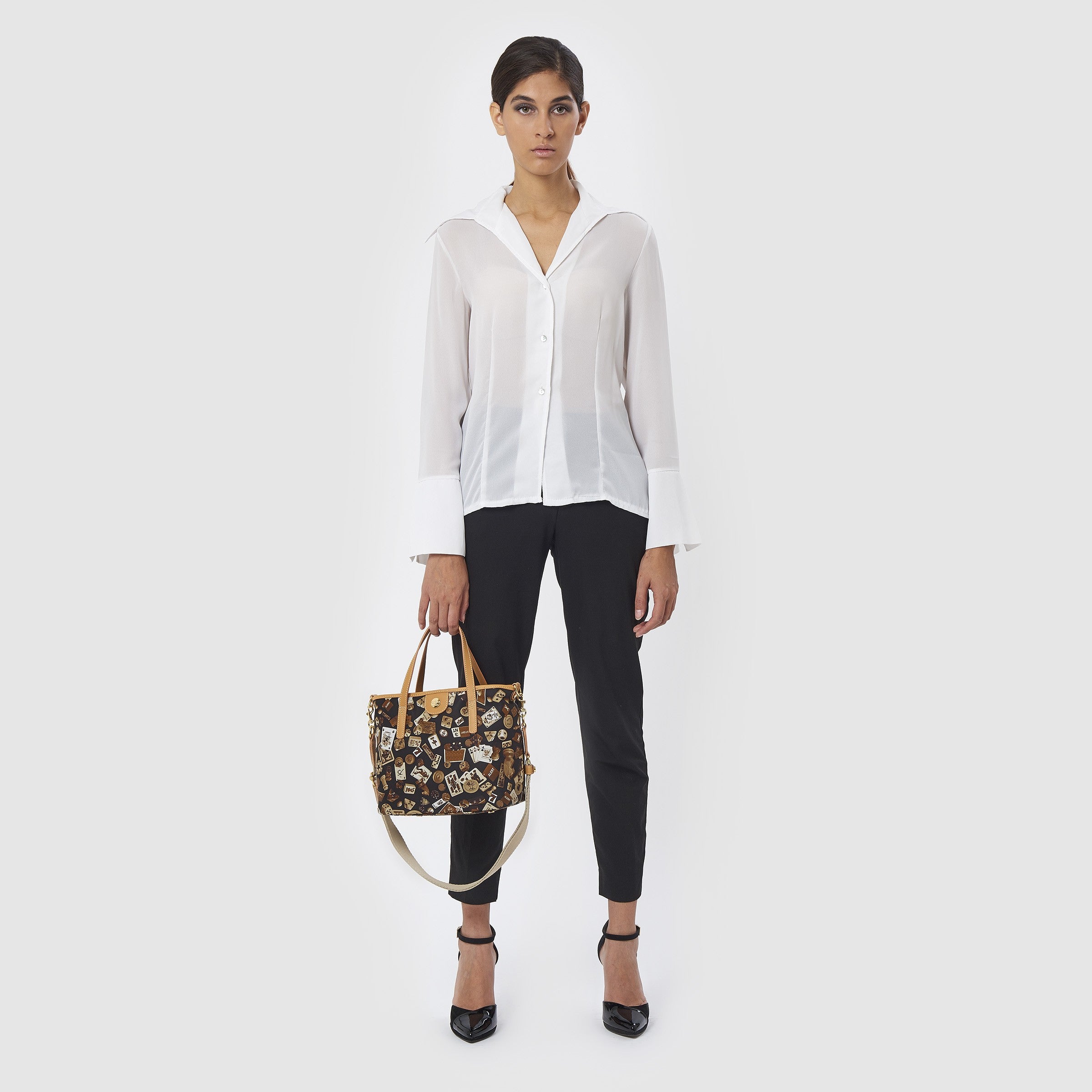 Sanremo Borsa shopping media in Nylon con Disegno Gambling Multicolor Nero/Cacao