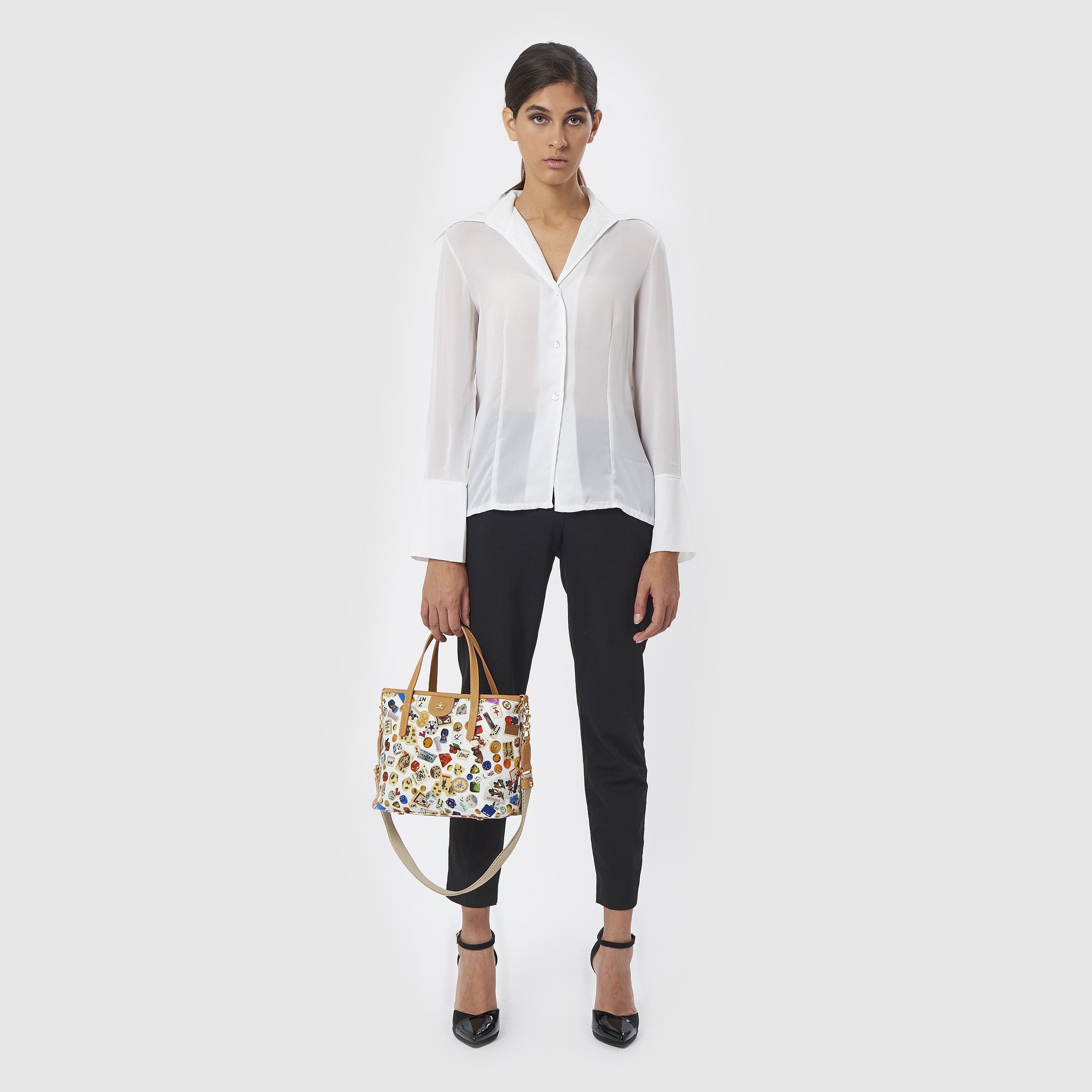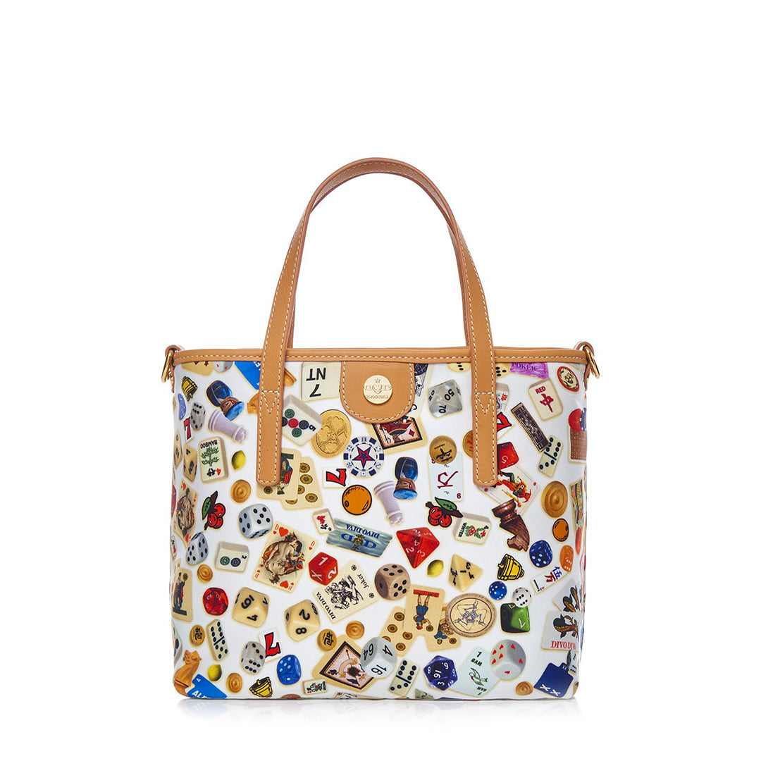 Niagara Borsa shopping piccola con tracolla in Nylon con Disegno Gambling Multicolor Bianco/Biscotto