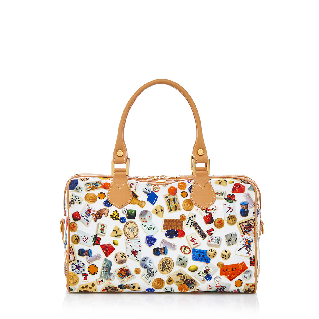 Montecarlo Borsa a mano con tracolla in Nylon con Disegno Gambling Multicolor Bianco/Biscotto