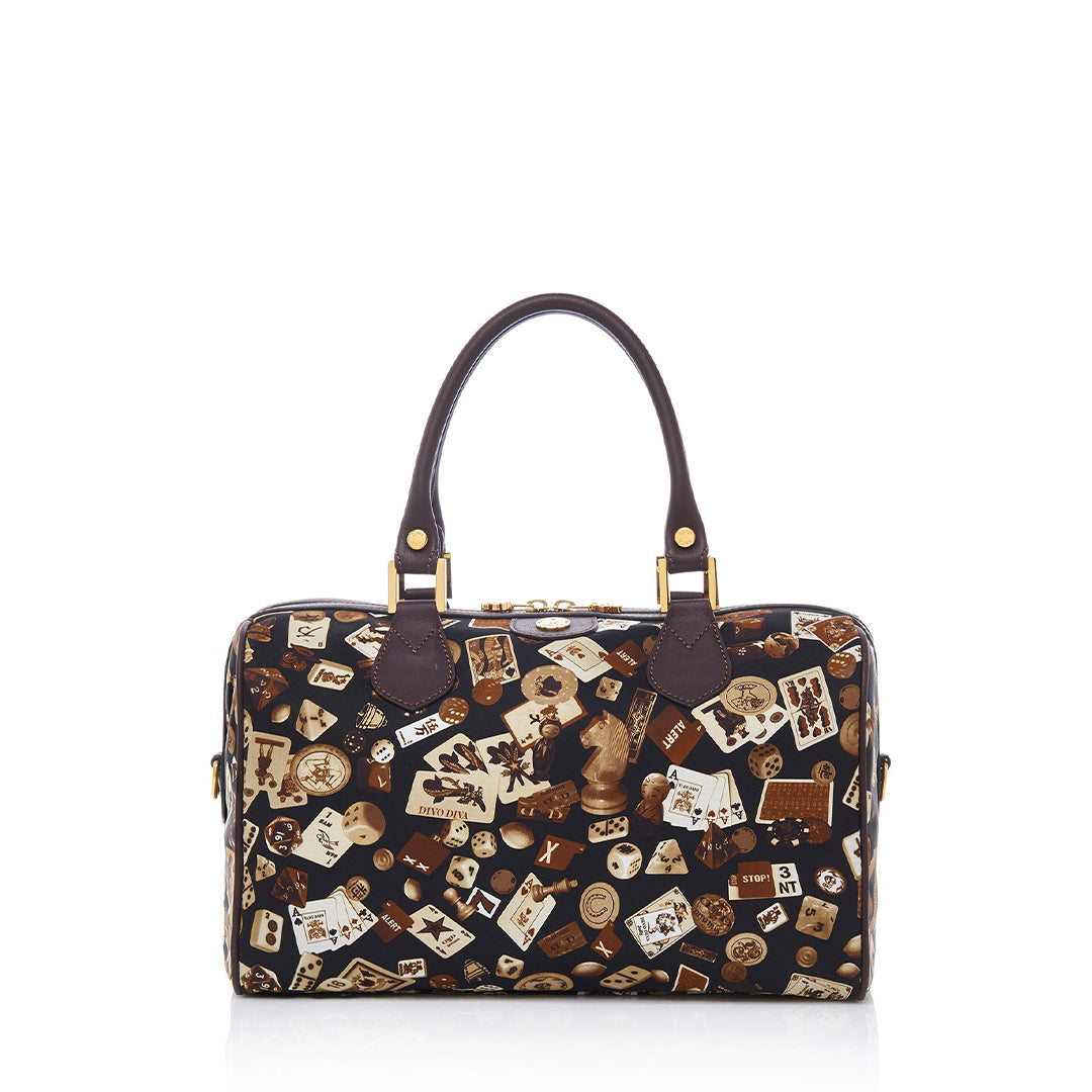 Montecarlo Borsa a mano con tracolla in Nylon con Disegno Gambling Multicolor Nero/Cacao