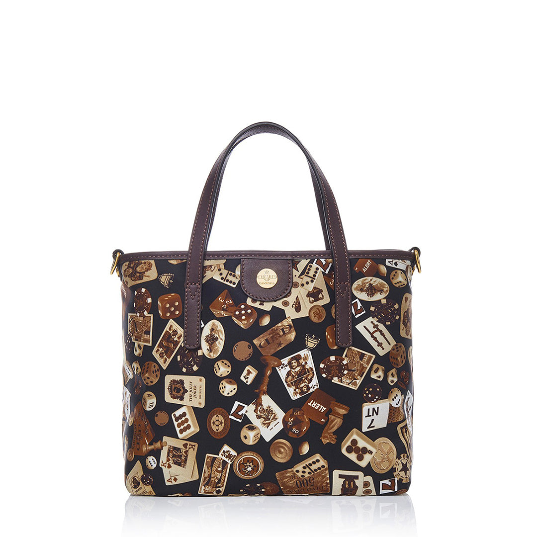Niagara Borsa shopping piccola con tracolla in Nylon con Disegno Gambling Classic Marrone/Biscotto