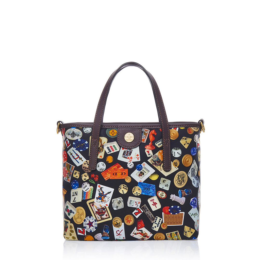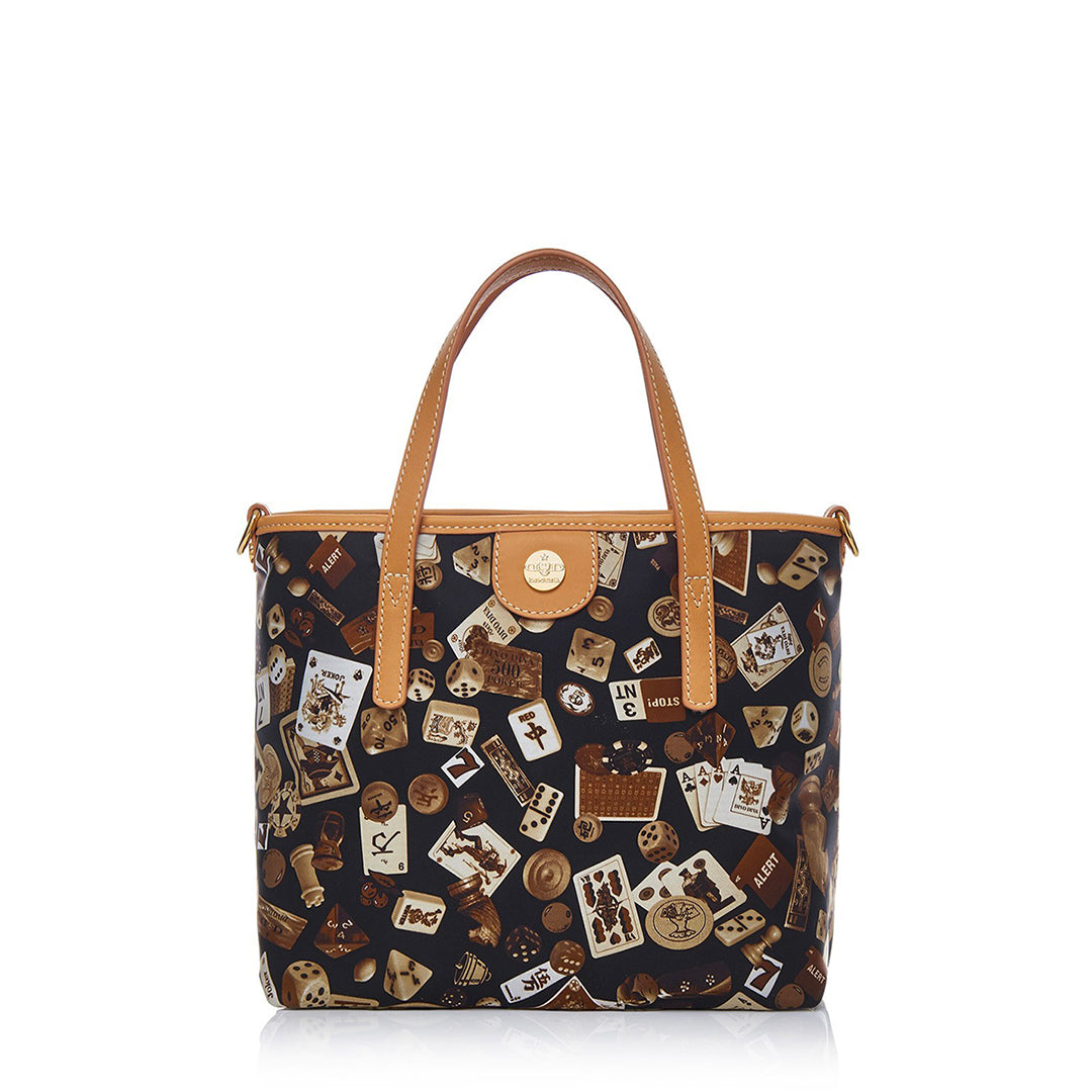 Niagara Borsa shopping piccola con tracolla in Nylon con Disegno Gambling Multicolor Nero/Cacao