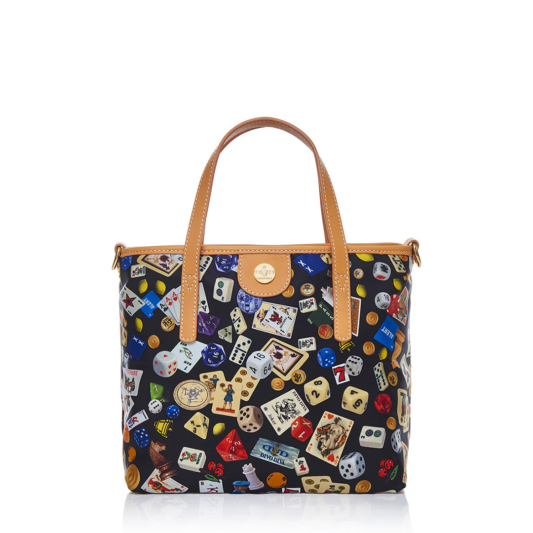 Niagara Borsa shopping piccola con tracolla in Nylon con Disegno Gambling Multicolor Nero/Biscotto