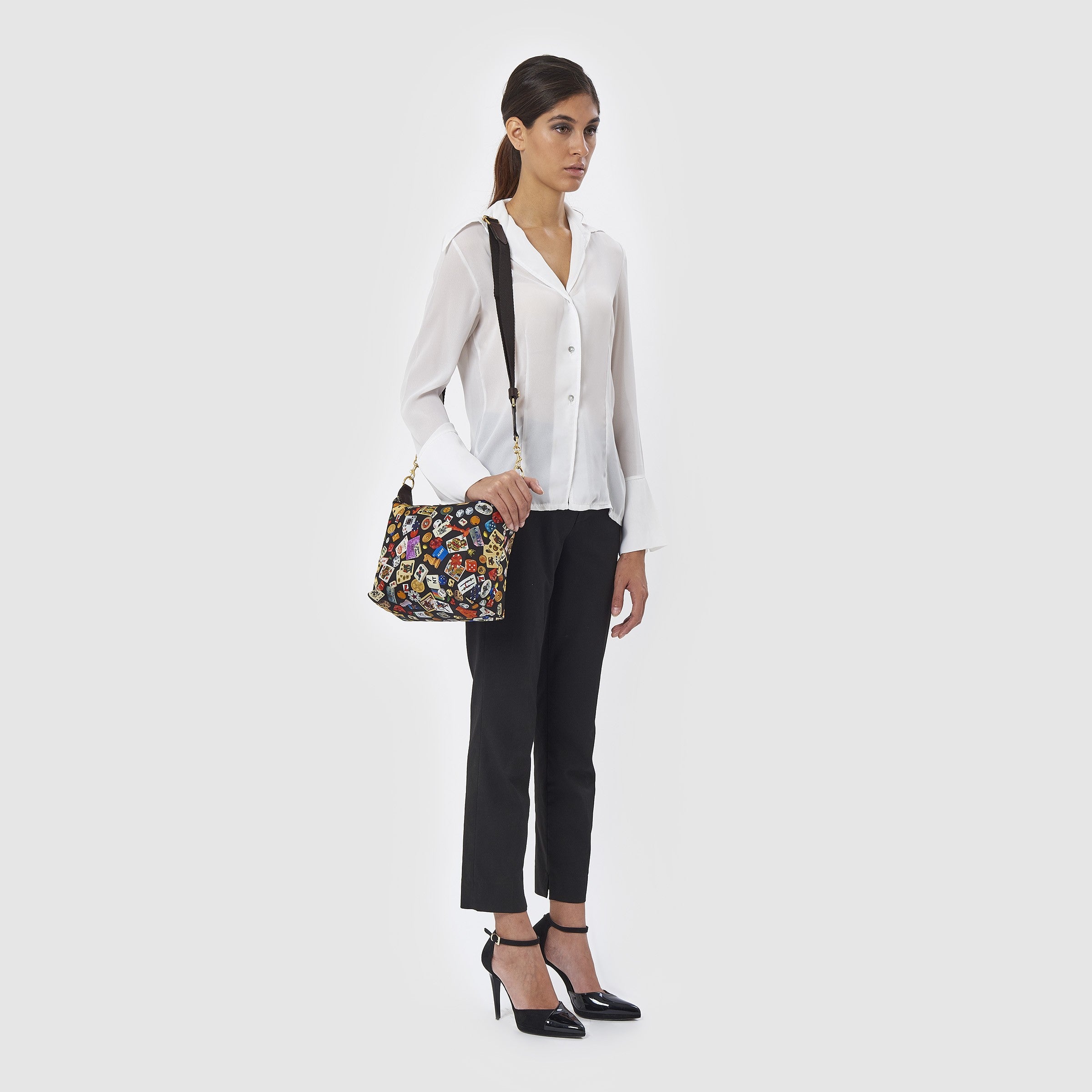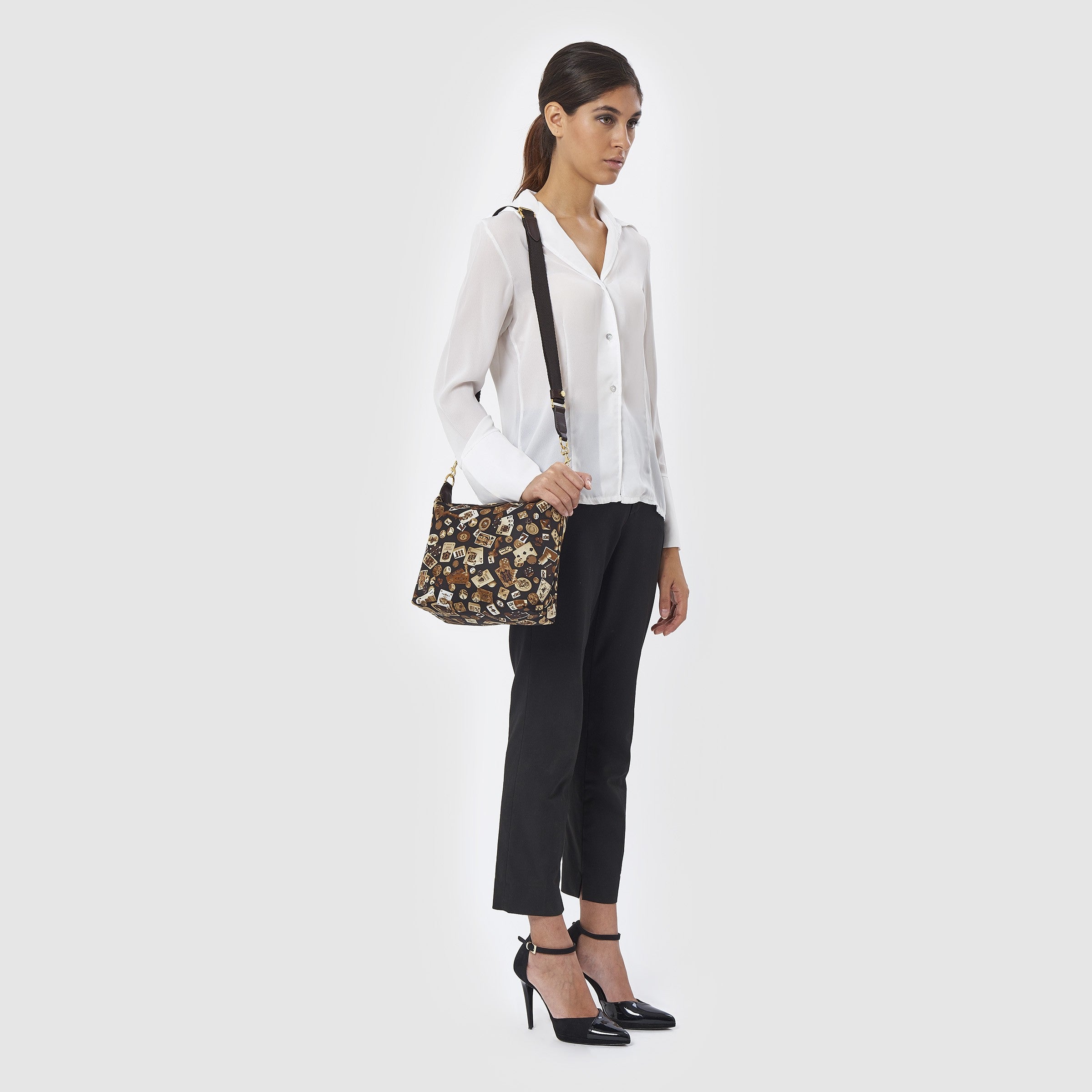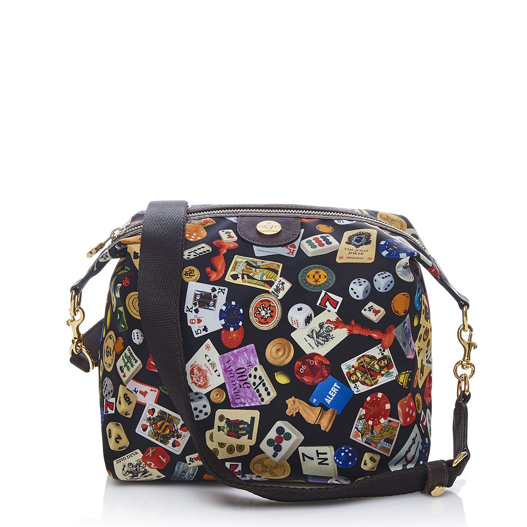 Dublin Tracolla in Nylon con Disegno Gambling Multicolor Nero/Cacao