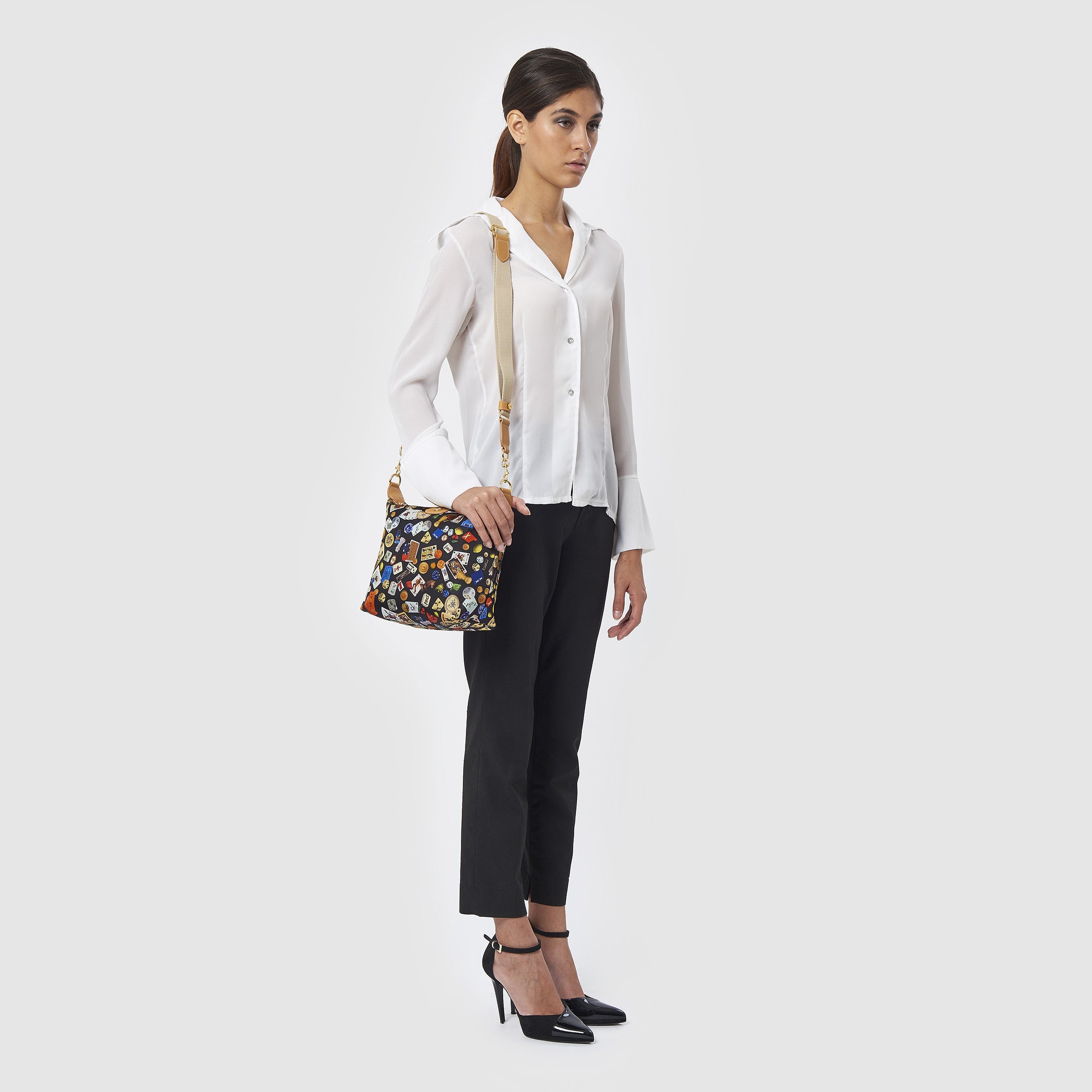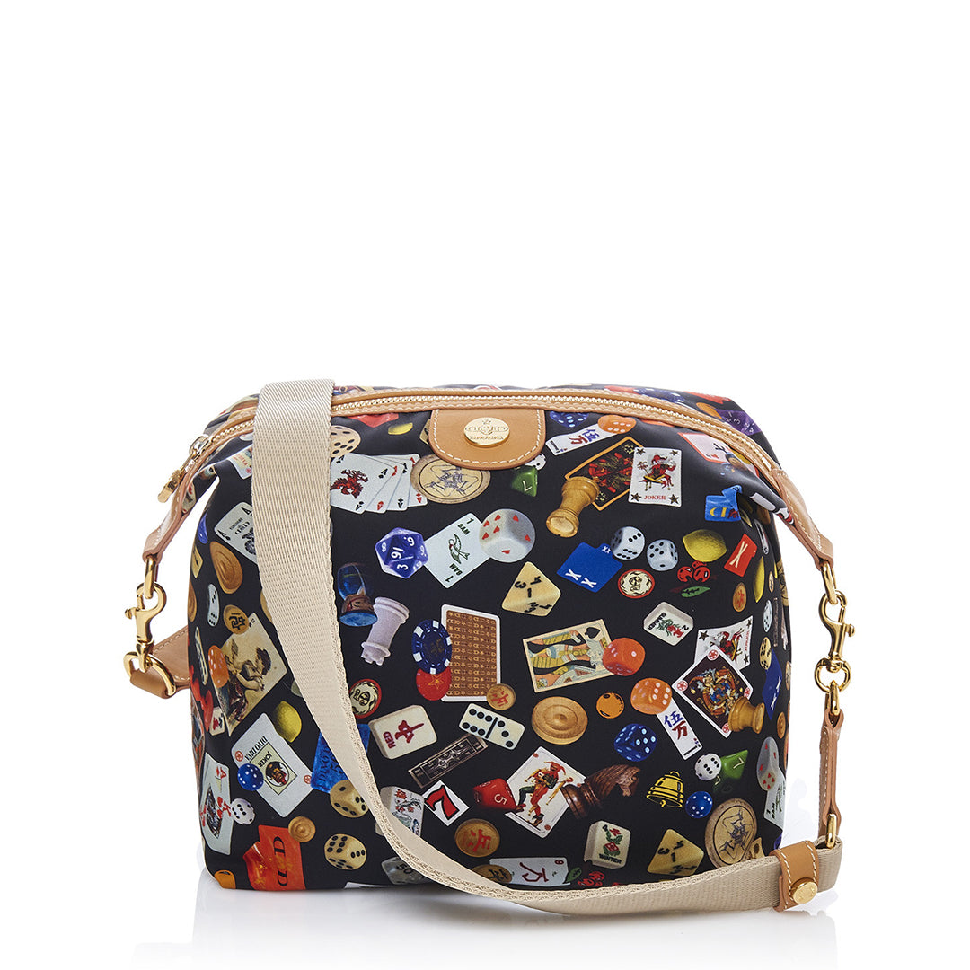 Dublin Tracolla in Nylon con Disegno Gambling Multicolor Nero/Biscotto