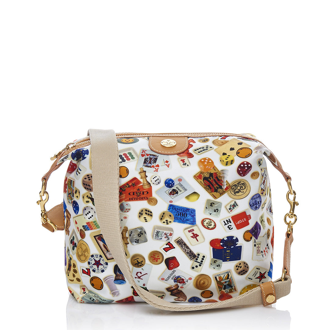 Dublin Tracolla in Nylon con Disegno Gambling Multicolor Bianco/Biscotto