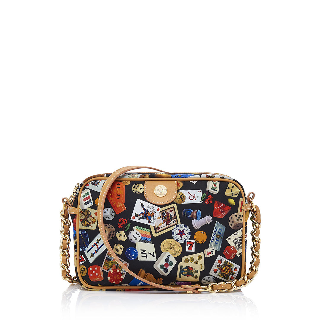 Las Vegas Tracolla con catene in Nylon con Disegno Gambling Multicolor Nero/Cacao