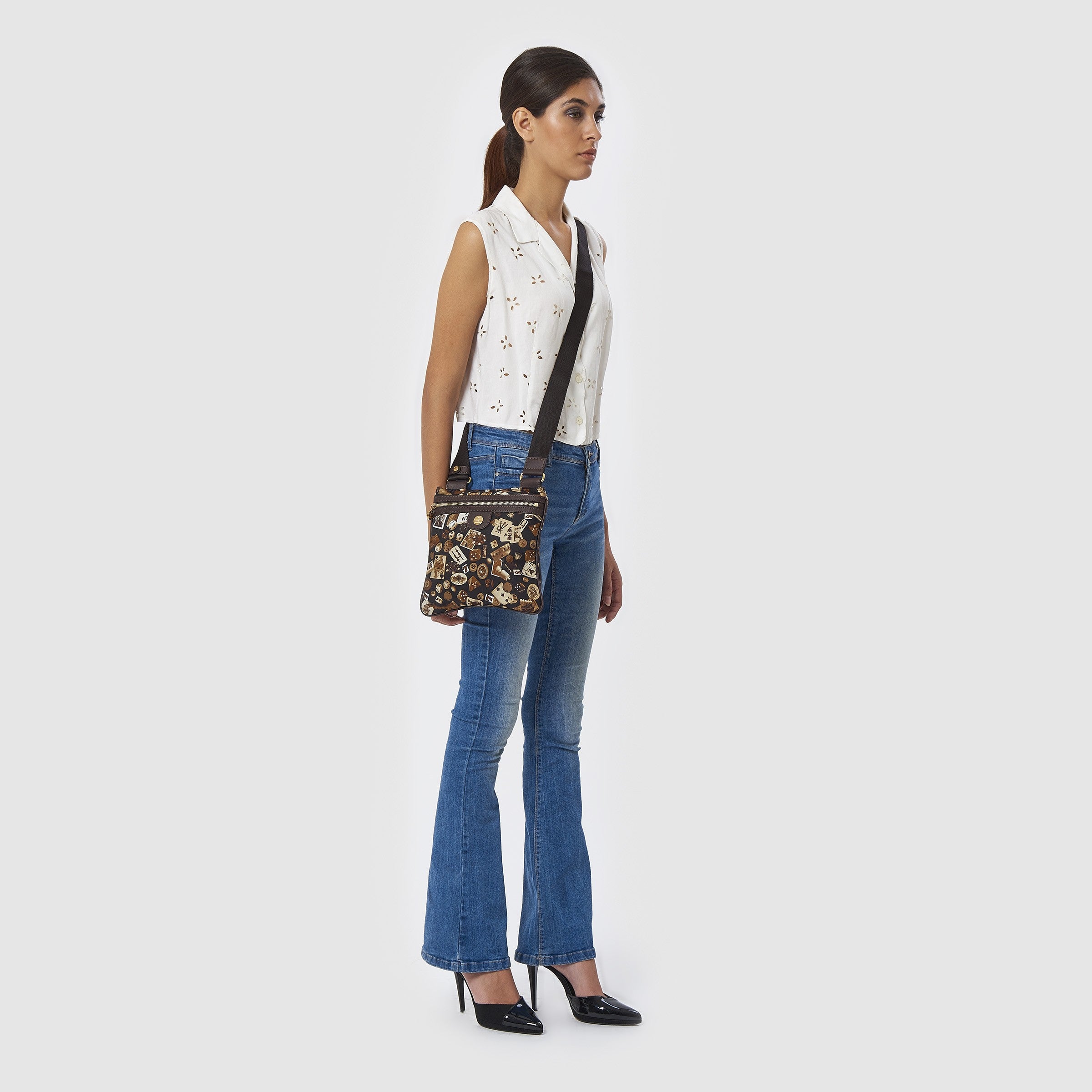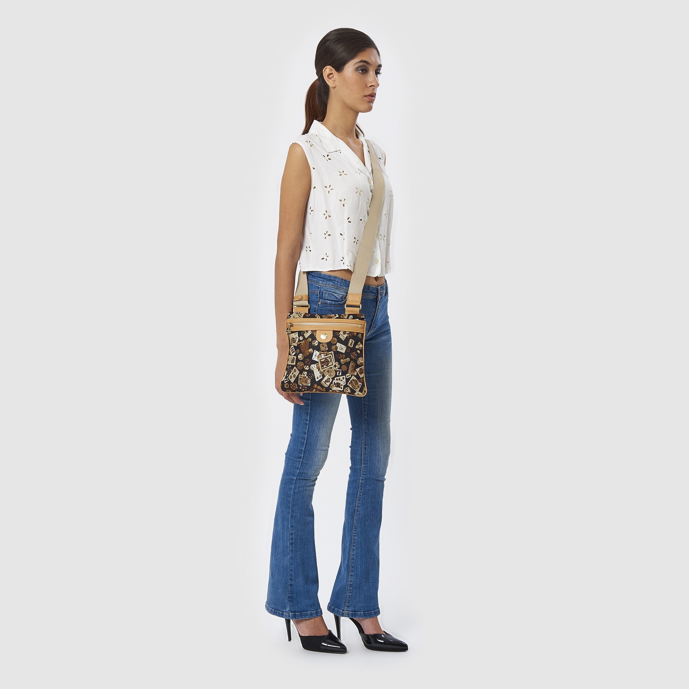 Madrid Tracolla piatta in Nylon con Disegno Gambling Classic Marrone/Cacao