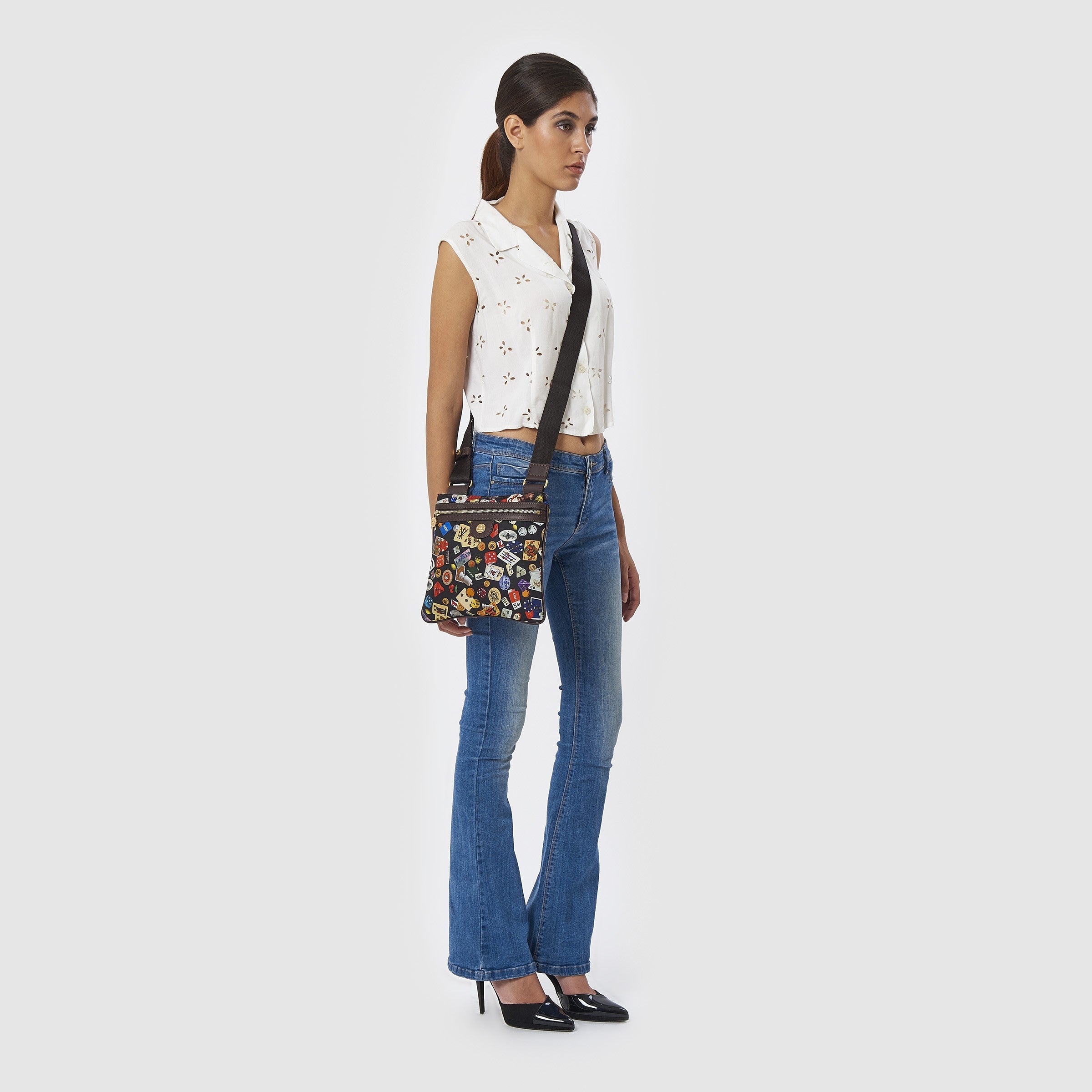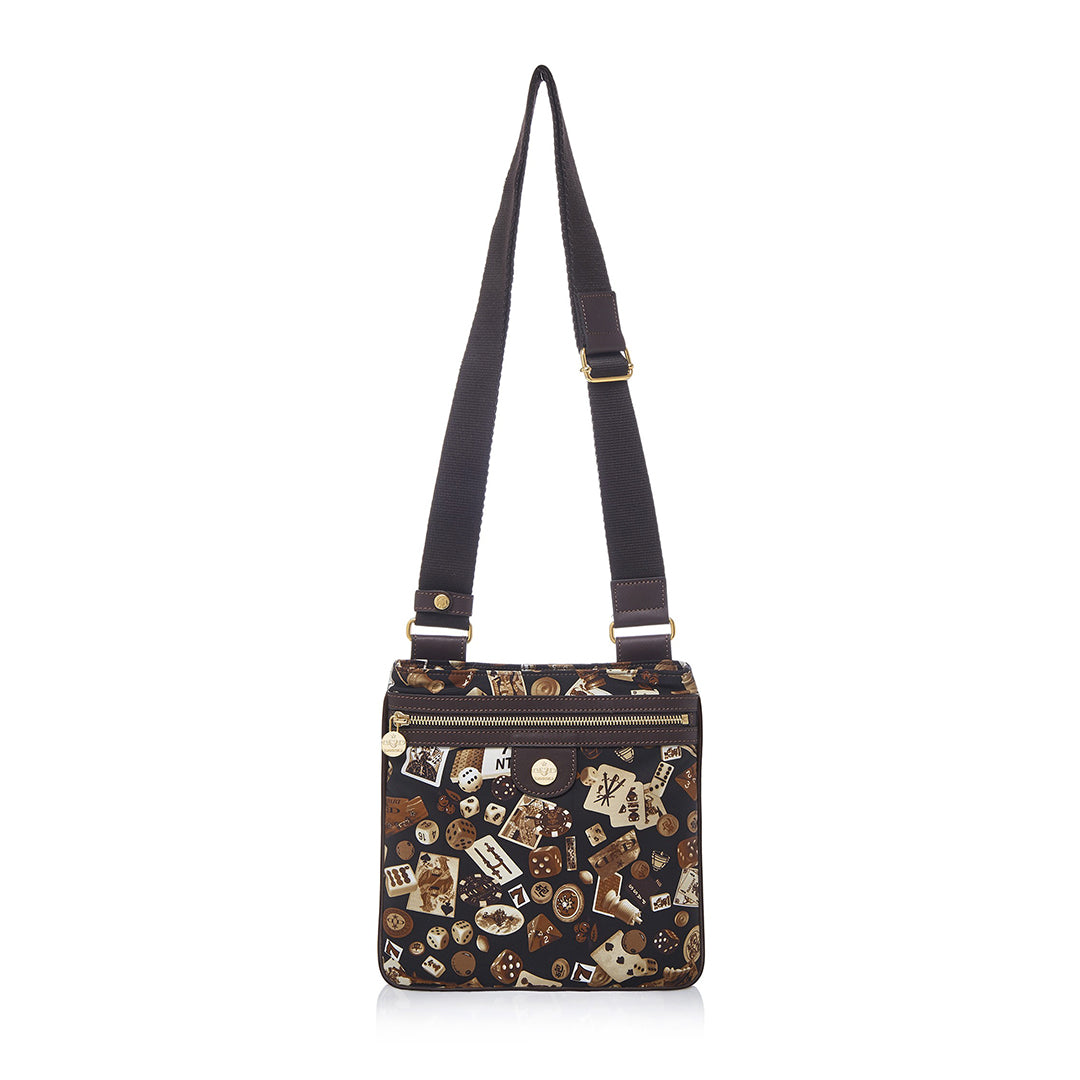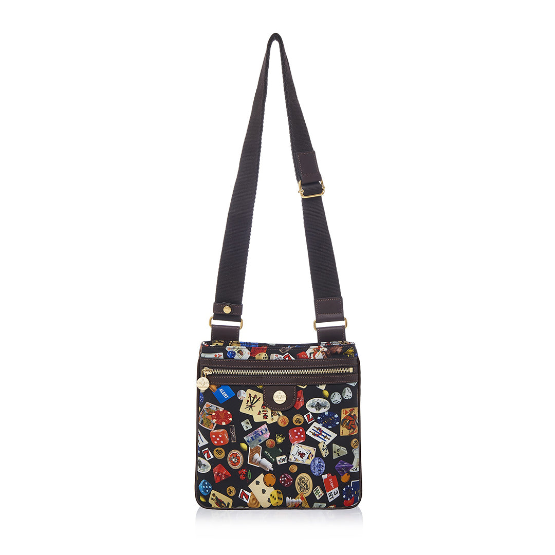 Madrid Tracolla piatta in Nylon con Disegno Gambling Multicolor Nero/Cacao