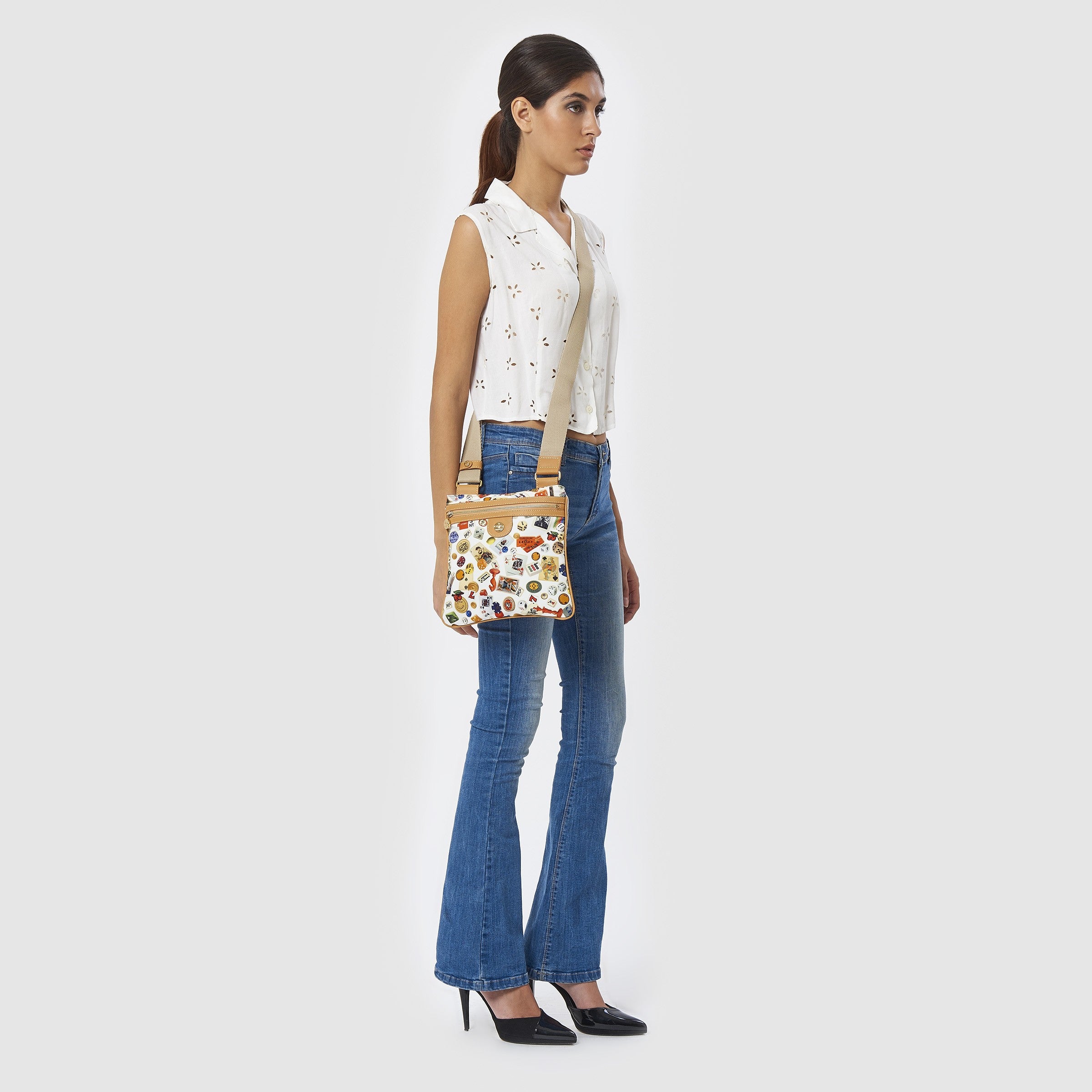 Madrid Tracolla piatta in Nylon con Disegno Gambling Multicolor Bianco/Biscotto