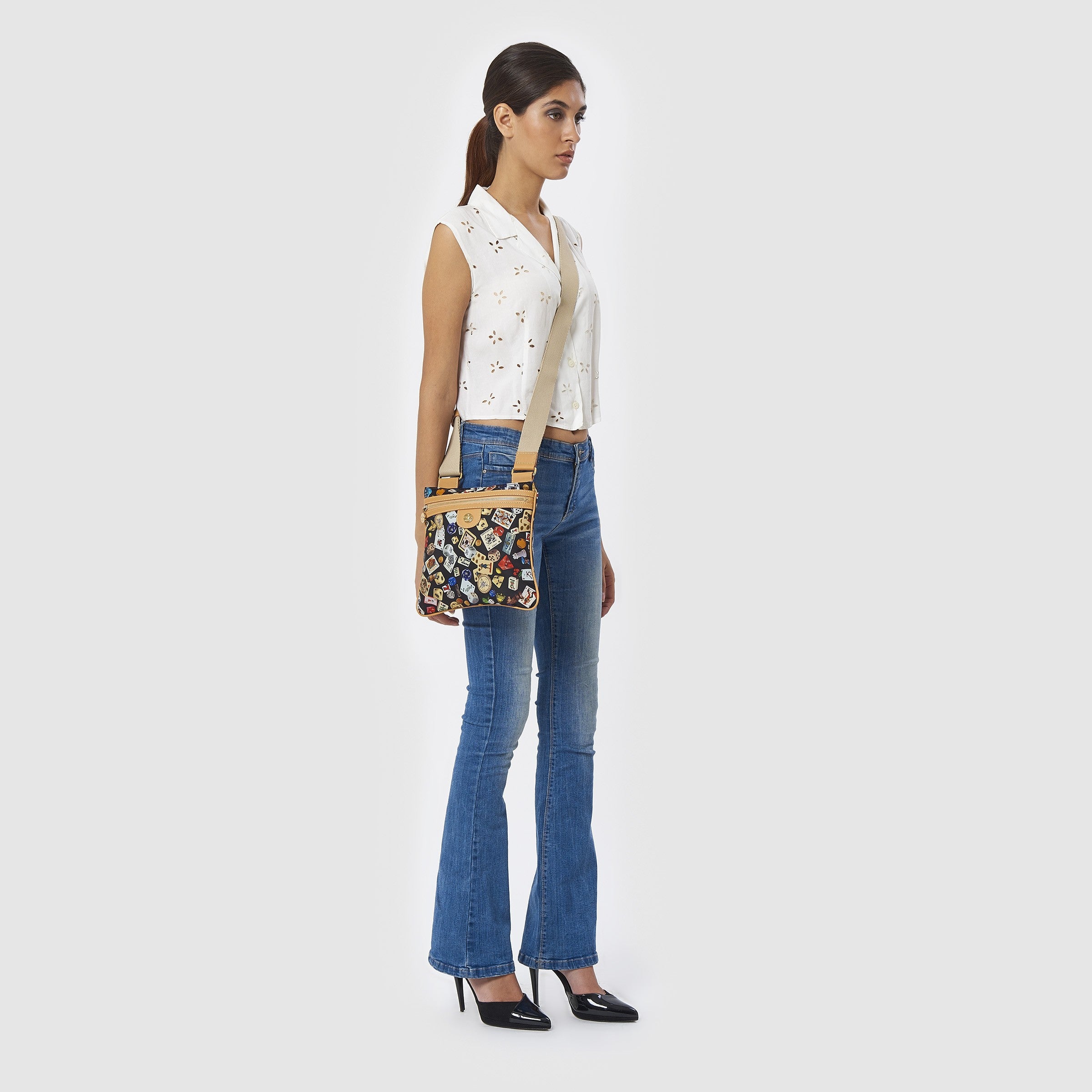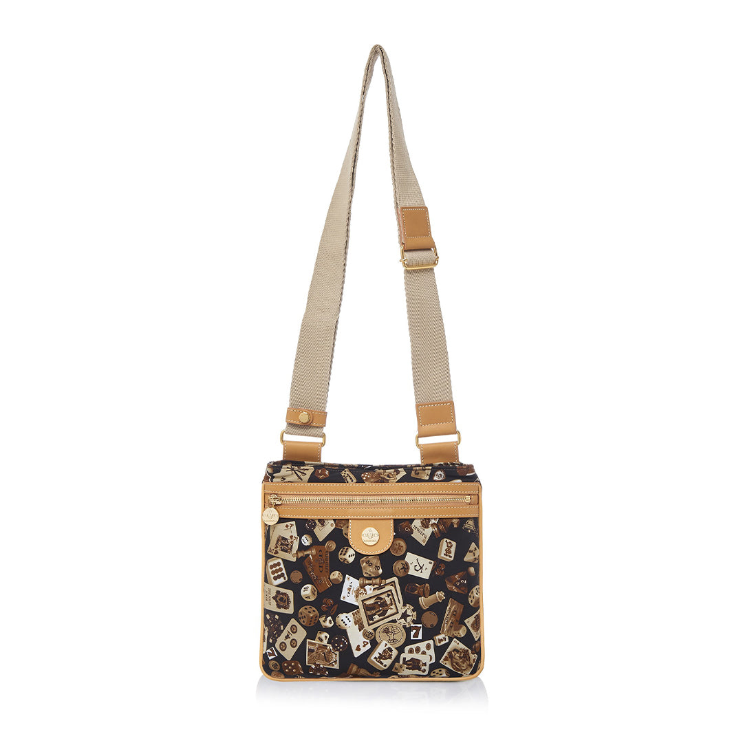 Madrid Tracolla piatta in Nylon con Disegno Gambling Multicolor Nero/Biscotto