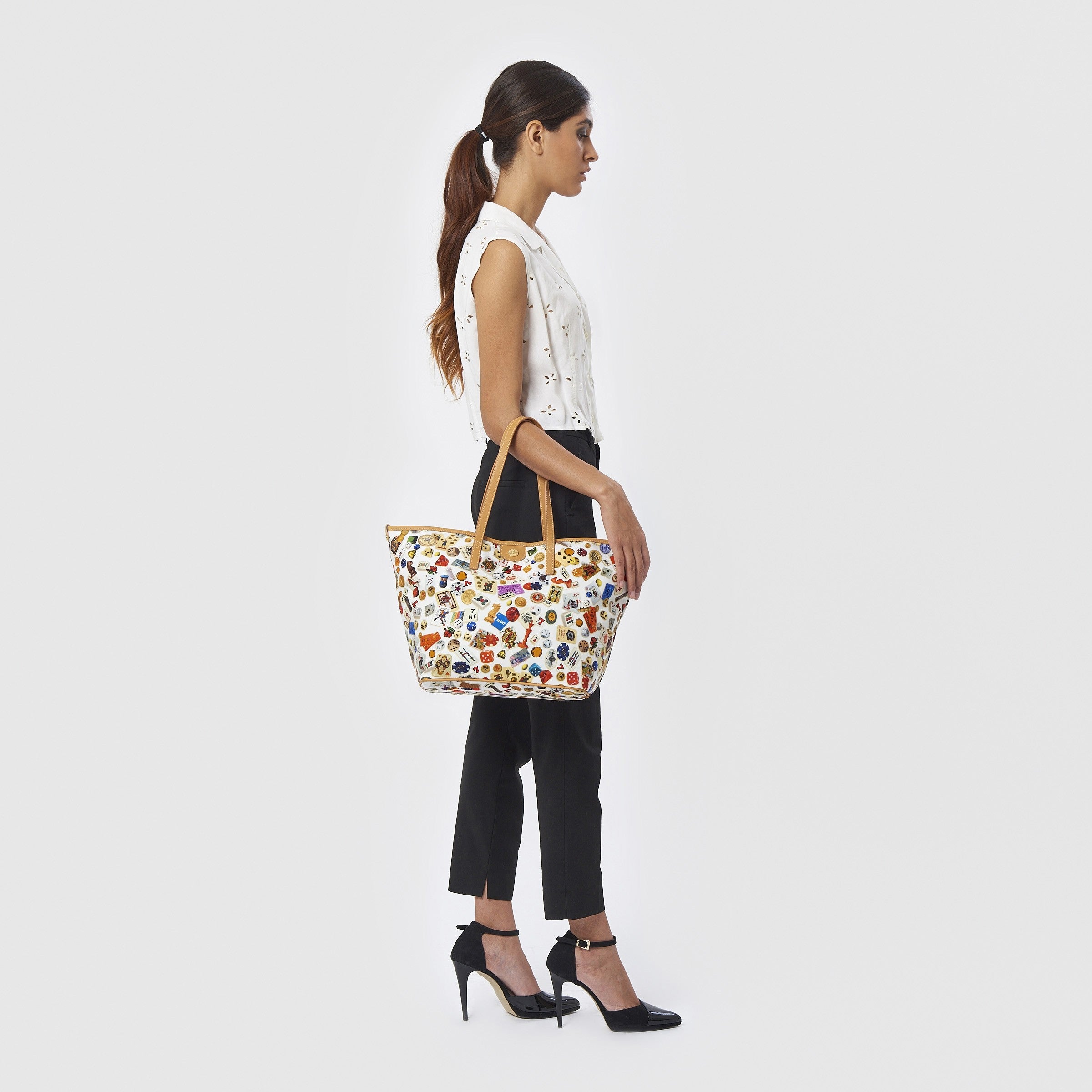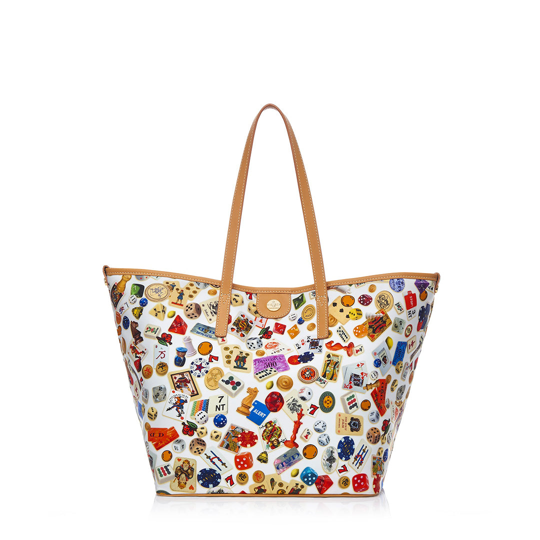 Sanremo Borsa shopping media in Nylon con Disegno Gambling Multicolor Bianco/Biscotto