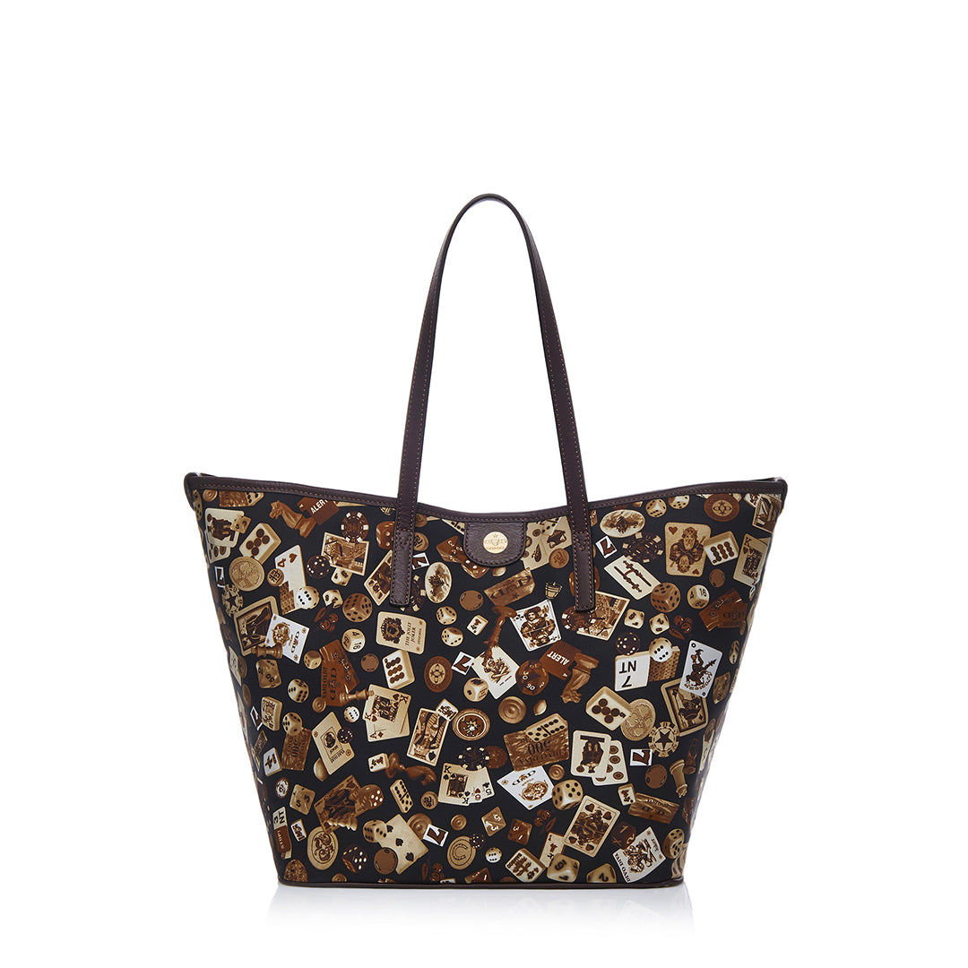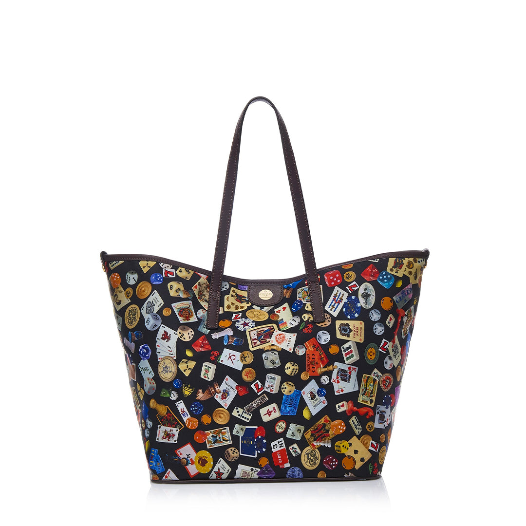 Sanremo Borsa shopping media in Nylon con Disegno Gambling Multicolor Nero/Cacao