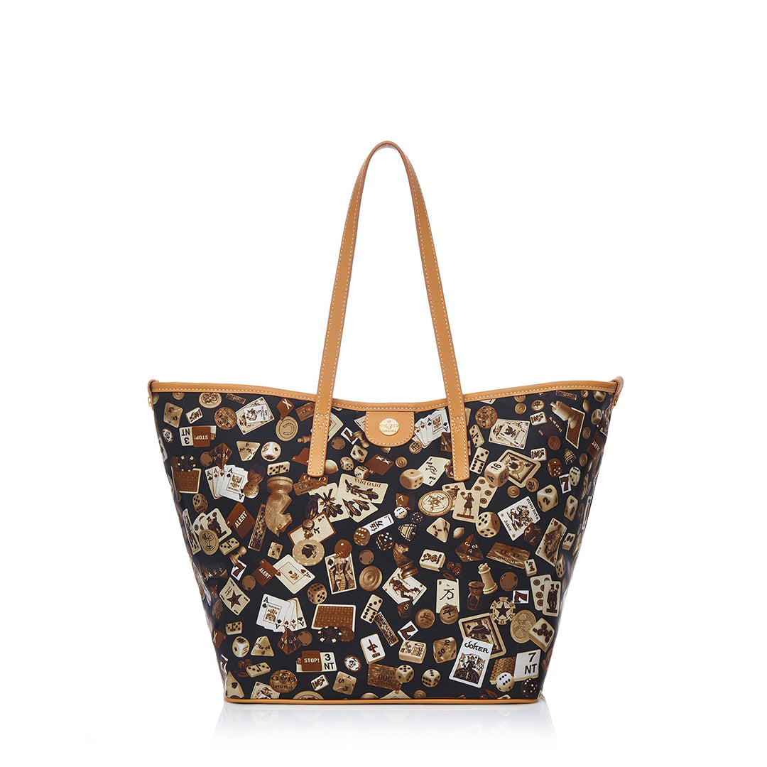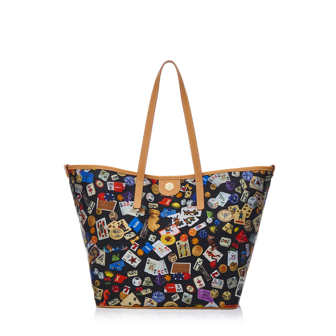 Sanremo Borsa shopping media in Nylon con Disegno Gambling Multicolor Nero/Biscotto